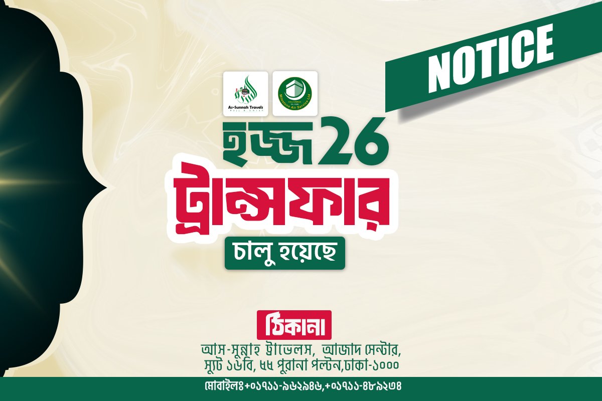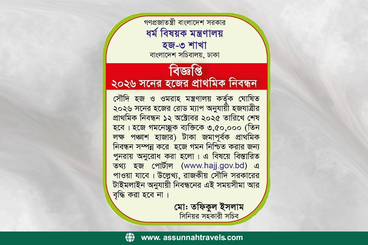 Secure your spiritual journey with our 2026 Hajj packages. Confirm your arrangements today for a seamless pilgrimage. As-Sunnah travels the best hajj & umrah agency in Bangladesh offer diverse options, ensuring a fulfilling and memorable Hajj experience. Limited spaces available, book now.